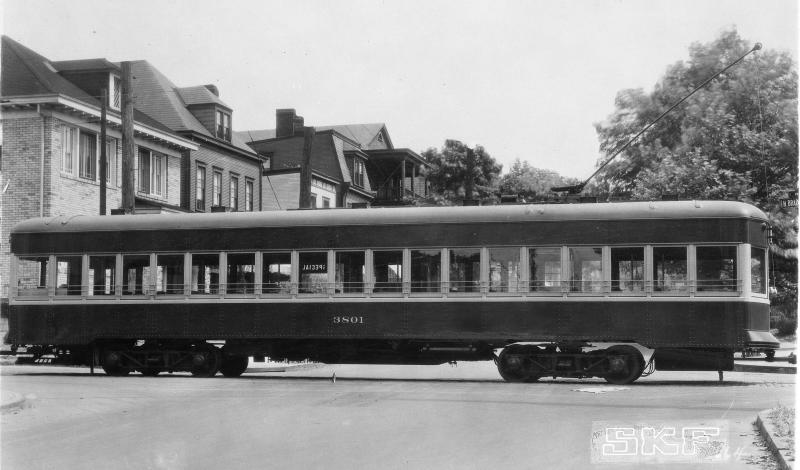 Ein Triebwagen Nr. 3801. Evtl. von der Chicagoer Straßenbahn.