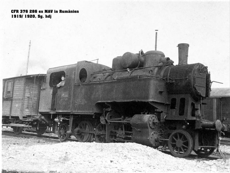 Insgesamt 108 Lokomotiven der MÁV-Reihe 376 waren nach dem 1. Weltkrieg in den Bestand der CFR gekommen, von denen einige Maschinen noch bis in die 70er Jahre im Einsatz standen. Nicht ganz so lange war die abgebildete 376.286 bei den Rumänischen Staatsbahnen im Einsatz - sie wurde 1958 an die Industrie verkauft: