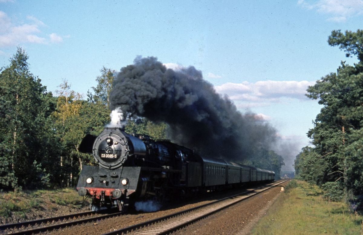 Bild 6: DR 03 0085 bei Eberswalde (1976) mit dem Schnellzug Stralsund-Berlin.