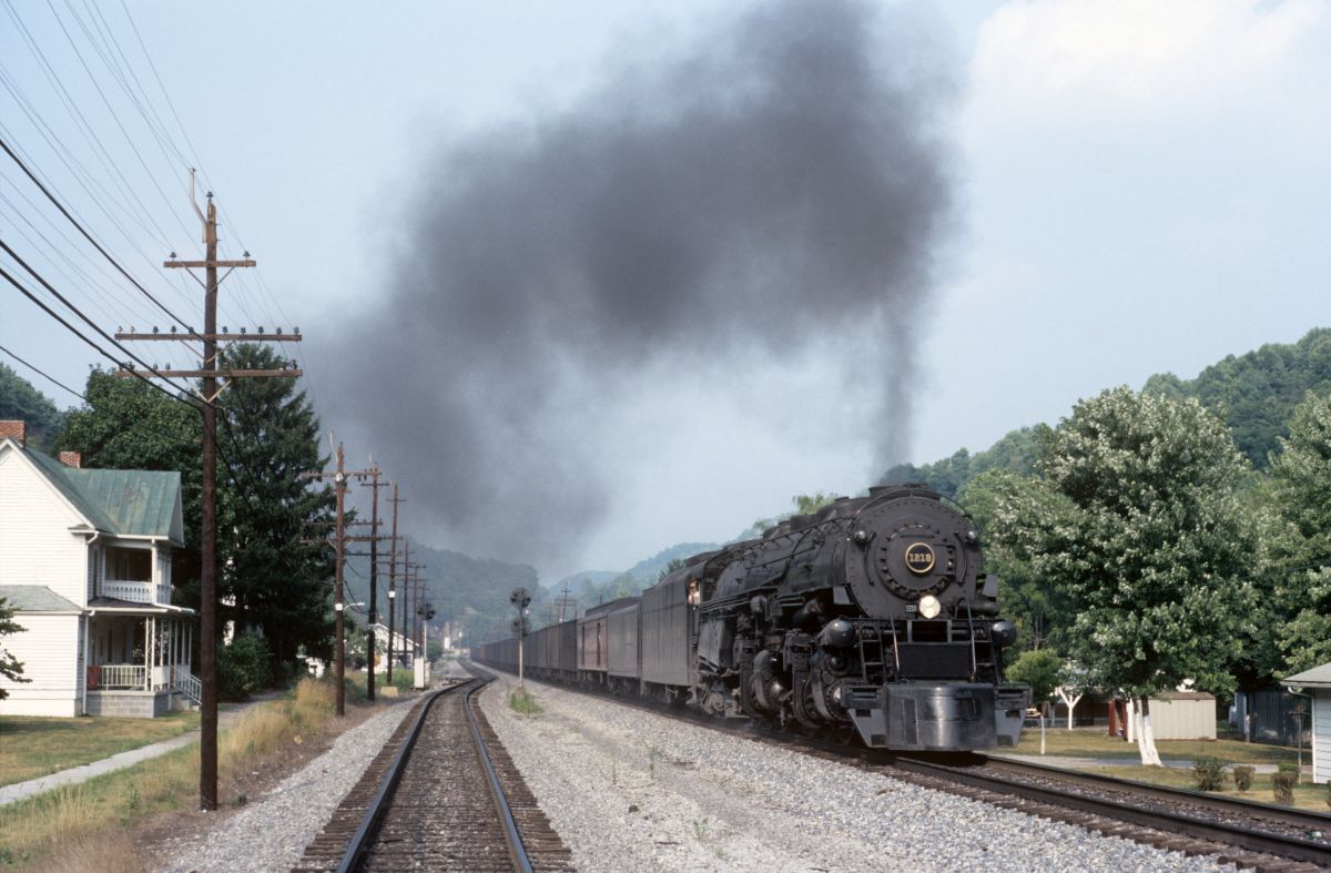 Picture 1: Norfolk & Western (N&W) 1218 with 25 loaded coal cars in Christiansburg.