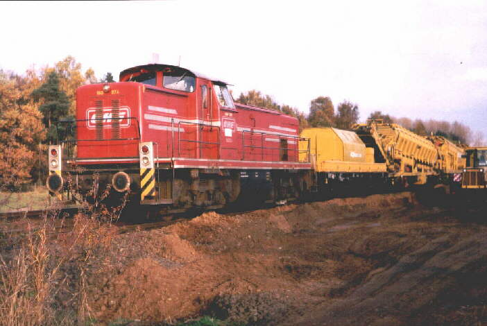 160 074 mit Ihrem Bauzug am 28.10.1994 in Sülfeld (Entladeplatz bei km 188,4).