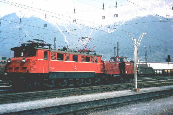 An die italienische Fa. Gleismac war 1980 die 800 012 verkauft worden. Bereit zur Brennerüberquerung steht die Lok im Schlepp von ÖBB 1670.06 in Innsbruck.