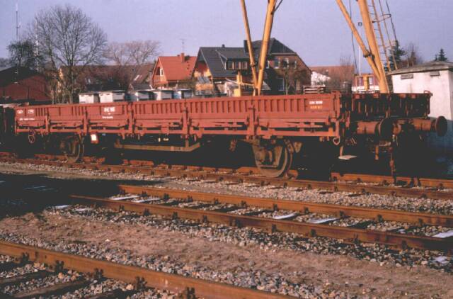 1990 erwarb die OHE diesen SNCF-Rungenwagen. Mit der Nummer 1195 (in dritter Besetzung) präsentierte er sich am 27.1.1997 in Soltau Süd dem Fotografen.