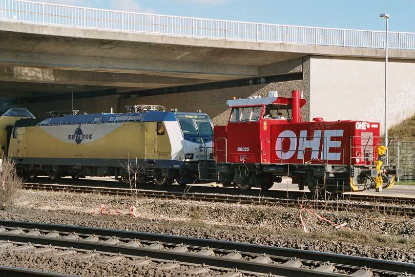 60 025 rangiert am 18. Februar 2004 die metronom ME 146-03 aus dem Bw zur Abstellgruppe.