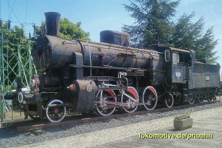 der Nähe des Bahnhofs steht die Denkmal-Dampflok 377.942 auf einem Gleisstumpf. Welche andere